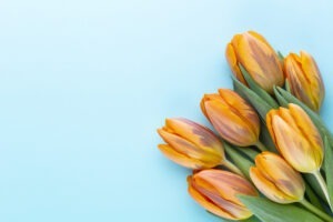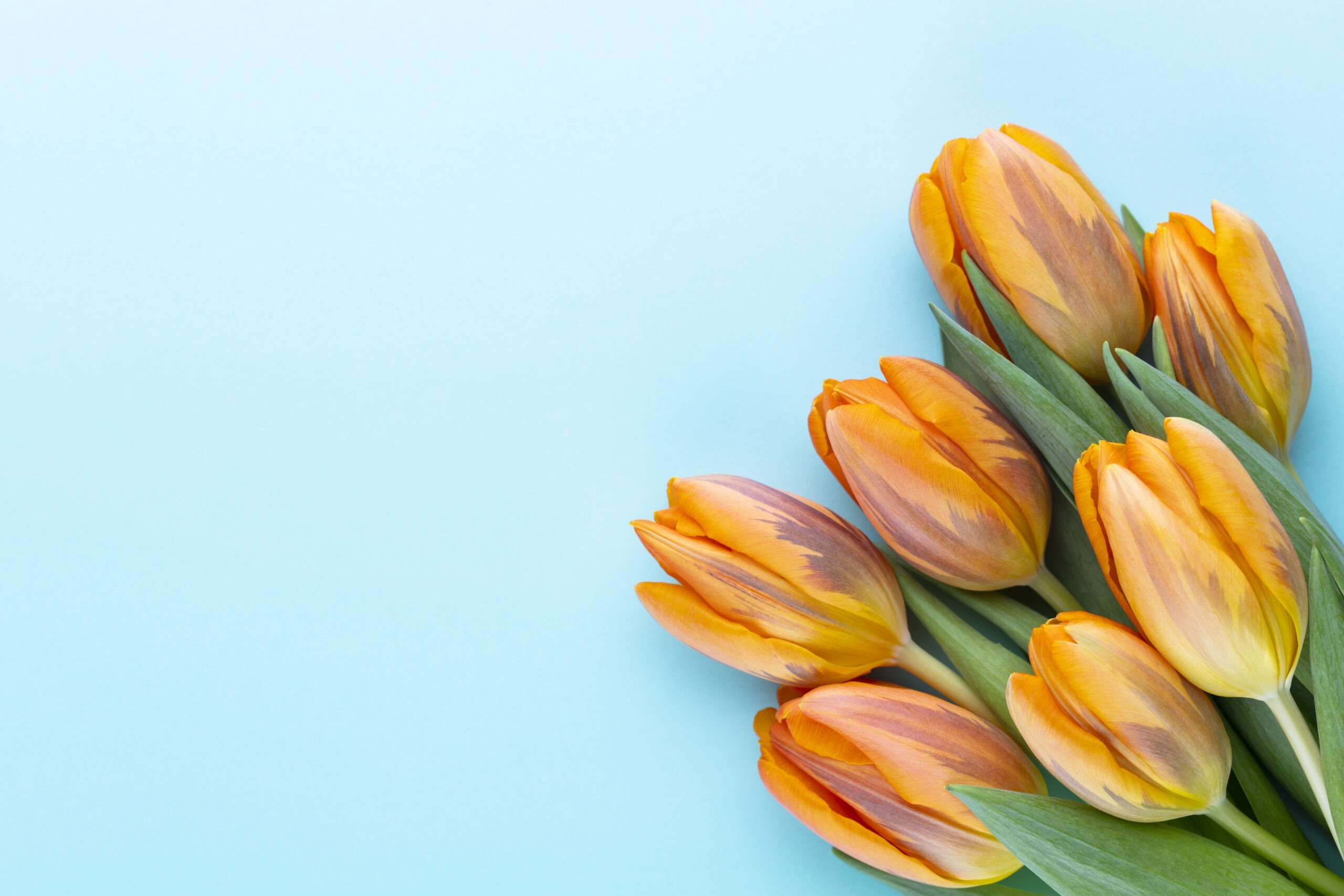 Orange tulips on the colored background, with copy space.