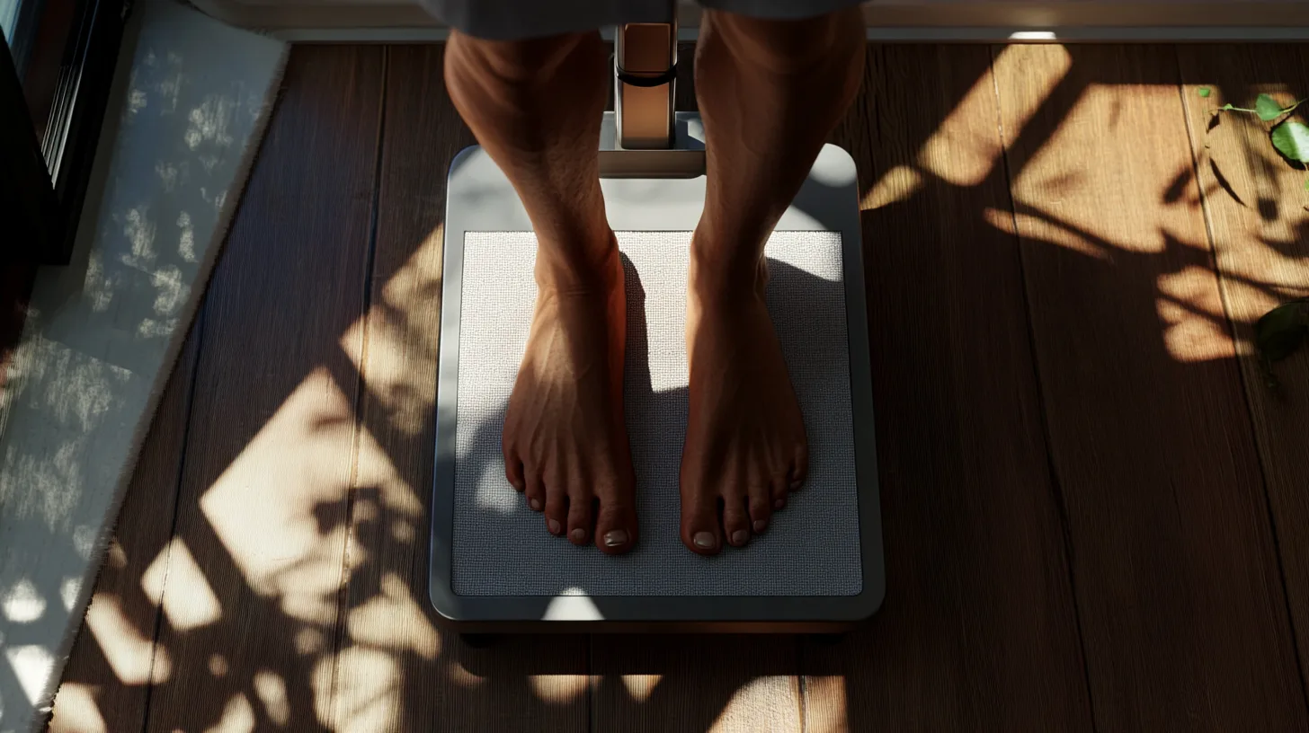 tinus.klauser_photorealistic_person_weighing_themselves_2398f2b6-d2fb-429a-a019-6228404b62f3